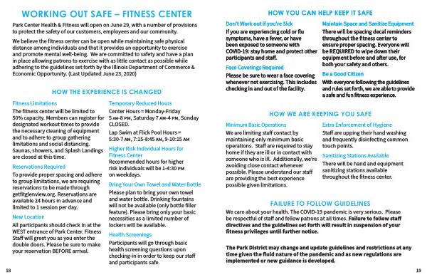 Park Center Health & Fitness will open on June 29, with a number of provisions