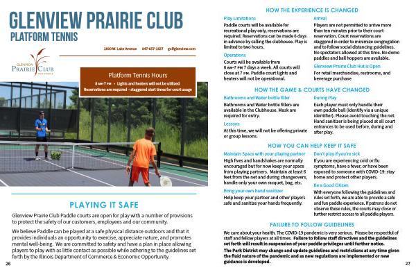 Glenview Prairie Club Paddle courts are open for play with a number of provisions
