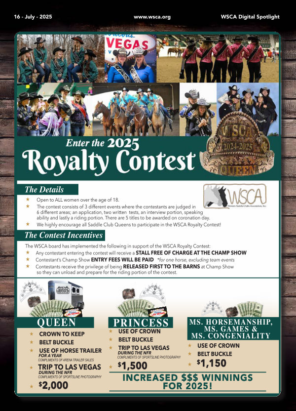 � We highly encourage all Saddle Club Queens to participate in the WSCA Royalty Contest!