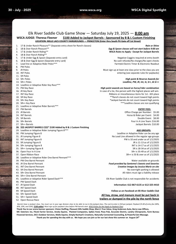 Elk River Saddle Club Game Show— Saturday July 19, 2025— 8:00 am