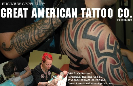 Page 139 AN TATTOO CO. PHOTOS: BLT 140 E. Jefferson St. Franklin, Indiana 46431 myspace.com/gatcofranklin GreatAmericanTattoo@gmail.com