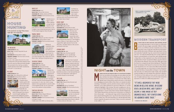 BY THE TURN OF THE CENTURY , THE GENTEEL SPORT of coaching had begun to lose its luster as enthusiasts turned to the newer , zippier automobile . Willie K . Vanderbilt II , son of William and Alva Vanderbilt , was an early proponent of auto racing and could often be found speeding around the dirt tracks of Newport and Long Island . In 1904 , he founded the Vanderbilt Cup , the country ’ s first international auto race . “ It ’ s well-documented they were racing on Bellevue Avenue , on Second Beach , on Ocean Drive , and it quickly became a thing where as they organized races , they started using the Aquidneck Horse Track ,” says David de Muzio , executive director at the Audrain Auto Museum . Three years later , Willie approached the French car company Renault about building the “ Vanderbilt Racer ,” promising to find buyers for at least ten of the vehicles or pick up the $ 150,000 cost ( close to $ 5 million today ) himself . “ It ’ s a really important car in the history of early automotive racing and the history of automobiles in Newport ,” says de Muzio , who notes the car could reach 80 mph . Today , only a handful remain , including one in the Audrain Auto Museum ’ s collection . “ I ’ ve driven it at forty miles per hour , and it ’ s scary as hell ,” he says . “ At eighty miles per hour , it ’ s not for the faint of heart by any means . It really is an exhilarating experience .” — L . C .