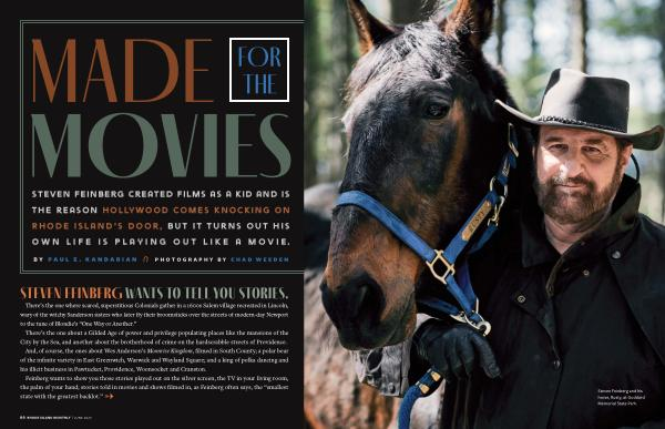 Steven Feinberg created films as a kid and is the reason Hollywood comes knocking on Rhode Island ’ s door , but it turns out his own life is playing out like a movie . by paul e . kandarian o photography by chad weeden