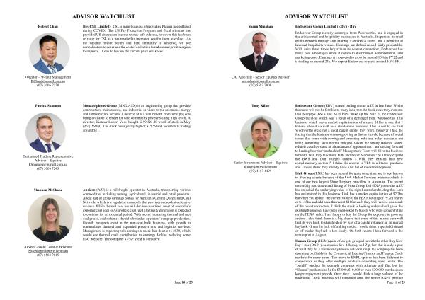 Buy CSL Limited - CSL ’ s main business of providing Plasma has suffered during COVID . The US Pay Protection Program and fiscal stimulus has provided US citizens an income to stay safe at home , however this has been an issue for CSL as it has resulted in increased cost for them to collect . As the vaccine rollout occurs and herd immunity is achieved , we see normalisation to occur and the cost of collection to reduce and profit margins to improve . Look to buy on the current price weakness .