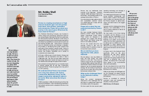 Our challenge going forward is in finding young hydraulic professionals who want to make a career in the hydraulic world, finding and inducting them into the Permco program on global basis. Labour and talent base is the biggest challenge