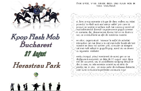 Ei, bine, K-Pop Romania si trupa de dans Endless au initiat proiectul “K-Flash Mob and Dance Battle” prin care isi propun sa sustina si sa faca mult mai cunoscut acest stil muzical.Proiectul doreste sa promoveze popul coreean in Romania, dar, deasemenea doresc tot ce ne dorim si noi, ca si restul lumii sa afle de existenta noastra.