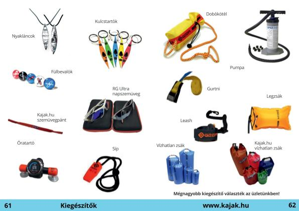Dobókötél Pumpa Gurtni Legzsák Leash Kajak.hu vízhatlan zsák Vízhatlan zsák Mégnagyobb kiegészítő választék az üzletünkben! www.kajak.hu 62