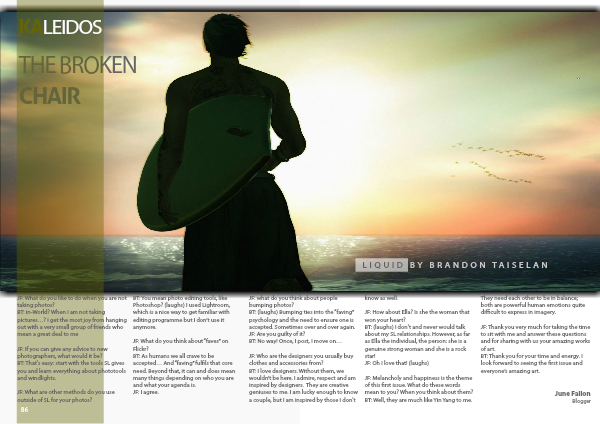 BT: Thank you for your time and energy. I look forward to seeing the first issue and everyone’s amazing art.