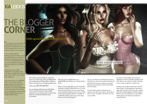 Poses play a very important role in photography, if not the most important one. Whether it is RL or SL photography, the pose has to be there and it has to be specific.