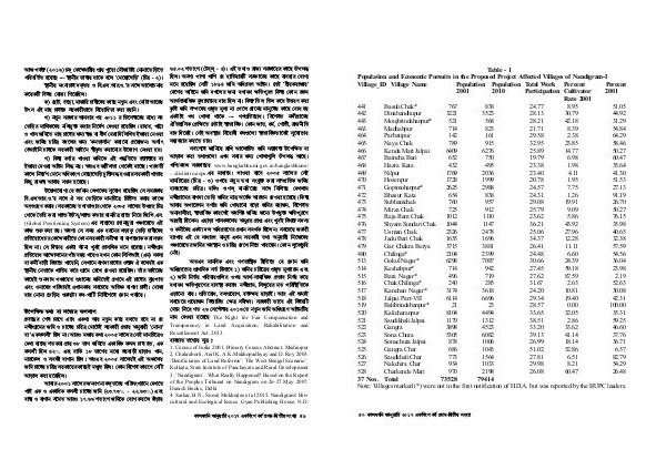 Population and Economic Pursuits in the Proposed Project Affected Villages of Nandigram-I | ||||||||