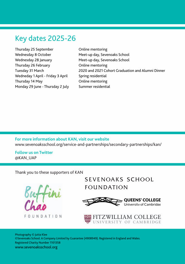 For more information about KAN, visit our website www. sevenoaksschool. org / service-and-partnerships / secondary-partnerships / kan /