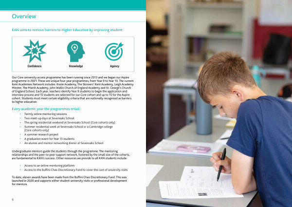 We are immensely grateful to our supporters: Christopher and Kristin Gill, The Buffini Chao Foundation, Queens’ College and Fitzwilliam College, Cambridge, and Sevenoaks School. As ever, we extend our thanks to our teacher leads who promote KAN in their schools and provide valuable feedback. Our mentor team continues to be the backbone of KAN, supporting our students and sharing their own experiences. Thanks also go to Jutta, Jamie and Sophie at Sevenoaks who have been instrumental in running KAN, as well as all our volunteer teachers who deliver a wide range of engaging sessions during meet-up days and residentials. A sincere thank you too to our collaborators( listed in the‘ Review of Events’ section of this report).