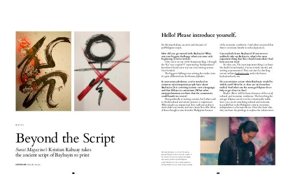 QUILL Beyond the Script Surat Magazine’s Kristian Kabuay takes the ancient script of Baybayin to print I nte rv ie w Danielle Austria 68