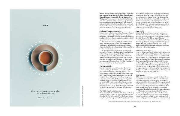 R O M E TH AF PA L A T E LA YLIS w o r d s Patricia Herbolario P What you hear is as important as what you see in a coffee shop
