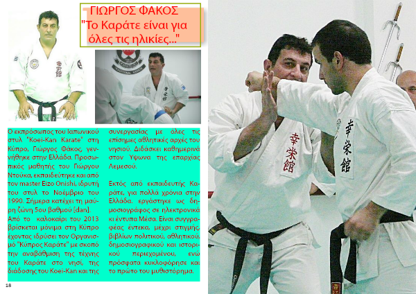 Ο εκπρόσωπος του Ιαπωνικού στυλ "Koei-Kan Karate" στη Κύπρο, Γιώργος Φάκος, γεν-νήθηκε στην Ελλάδα. Προσω-πικός μαθητής του Γιώργου Ντούκα, εκπαιδεύτηκε και από τον master Eizo Onishi, ιδρυτή του στυλ το Νοέμβριο του 1990. Σήμερα κατέχει τη μαύ-ρη ζώνη 5ου βαθμού [dan].