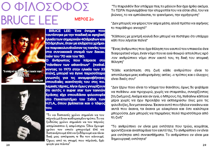 "Δεν ξέρω ποιο είναι το νόημα του θανάτου, όμως δε φοβάμαι να πεθάνω -και προχωρώ, χωρίς να σταματάω, συνεχίζοντας [τη ζωή μου]. Ακόμα και αν εγώ, ο Μπρους Λη, πεθαίνω κάποια μέρα χωρίς να έχω προλάβει να εκπληρώσω όλες μου τις φιλοδοξίες, δεν μετανιώνω. Έκανα αυτό που ήθελα να κάνω και αυτά που έκανα, τα έκανα με ειλικρίνεια και όσο καλύτερα μπορούσα. Δεν μπορείς να περιμένεις πολύ περισσότερα από τη ζωή"