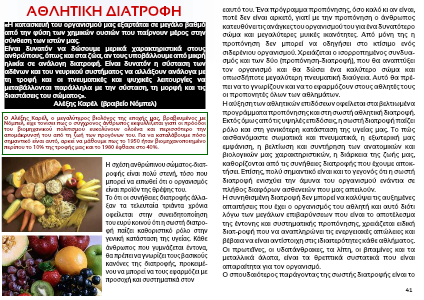 Το ότι οι συνήθειες διατροφής άλλα-ξαν τα τελευταία τριάντα χρόνια οφείλεται στην συνειδητοποίηση του ευρύ κοινού ότι η σωστή διατρο-φή παίζει καθοριστικό ρόλο στην γενική κατάσταση της υγείας. Κάθε άνθρωπος που γυμνάζεται έντονα, θα πρέπει να γνωρίζει τους βασικούς κανόνες της διατροφής, προκειμέ-νου να μπορεί να τους εφαρμόζει με προσοχή και συστηματικά στον