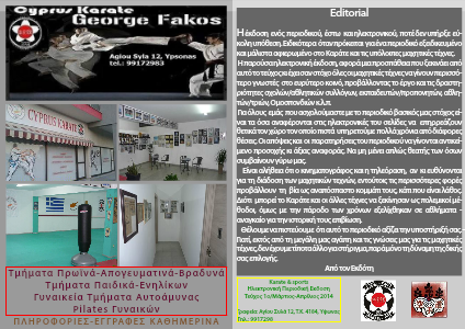 Η έκδοση ενός περιοδικού, έστω και ηλεκτρονικού, ποτέ δεν υπήρξε εύ-κολη υπόθεση. Ειδικότερα όταν πρόκειται για ένα περιοδικό εξειδικευμένο και μάλιστα αφιερωμένο στο Καράτε και τις υπόλοιπες μαχητικές τέχνες.