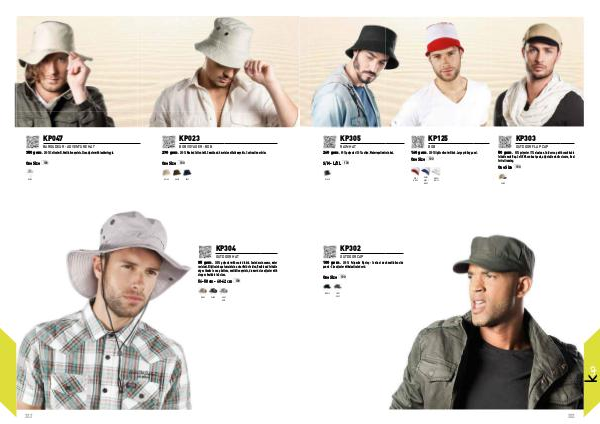 260 gsm • 90% polyester / 10% cotton. Water repellent rain hat.
