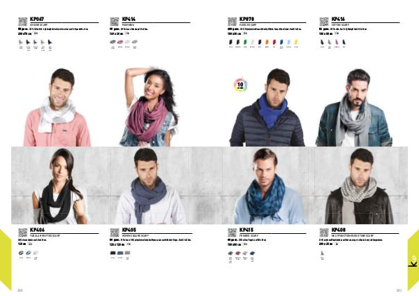 200 gsm • 100 % Polyester micro fleece with anti-pill finish. Fancy stitch all round. Size 180 x 30 cm. 56 gsm • 100% cotton. Scarf in lightweight fabric 180 x 80 cm