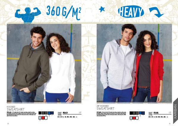 360 gsm • 80 % combed cotton / 20 % polyester. Low shrinkage brushed fleece. Silicone