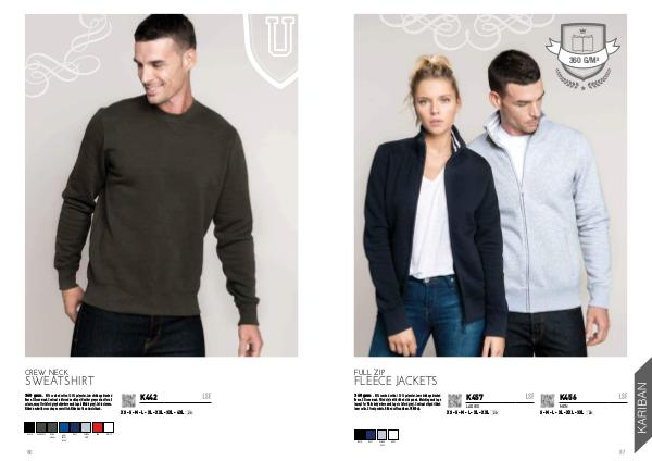 360 gsm • 80% combed cotton / 20% polyester. Low shrinkage brushed