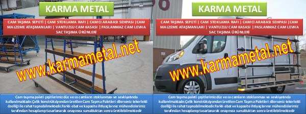 Cam taşıma paleti çeşitlerimiz düz ve ısı camların stoklanması ve sevkiyatında kullanılmaktadır. Çelik konstrüksiyondan üretilen Cam Taşıma Paletleri dilerseniz tekerlekli özelliği ile rahat taşınabilmektedir. Farklı ebat ve kapasite ihtiyaçlarınız mühendislerimiz tarafından hesaplanıp tasarlanarak onayınıza sunulduktan sonra üretilebilmektedir