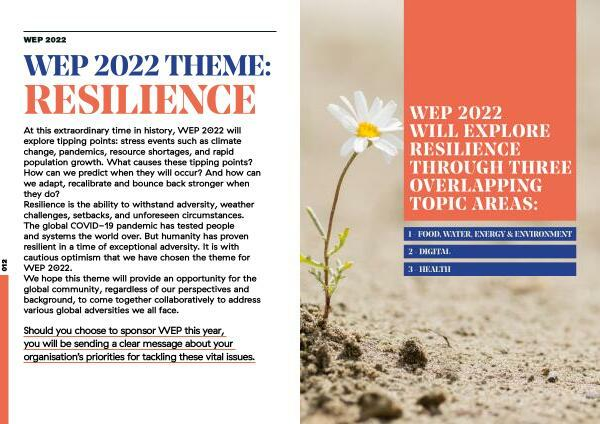 WEP 2022 WILL EXPLORE RESILIENCE THROUGH THREE OVERLAPPING TOPIC AREAS :