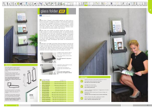 DE glass folder ist der elegante und zeitlose aufsteller zum einlegen von zeitungen, broschüren und flyer verschiedenster größen. der bodenprospekthalter