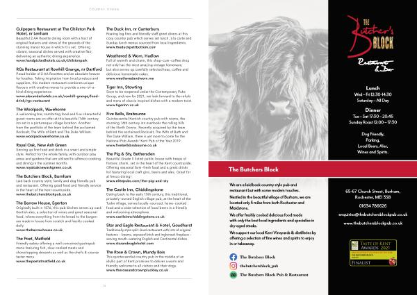 The Butchers Block , Burnham Laid back country style , family and dog friendly pub and restaurant . Offering good food and friendly service in the heart of the Kent countryside . www . thebutchersblockpub . co . uk