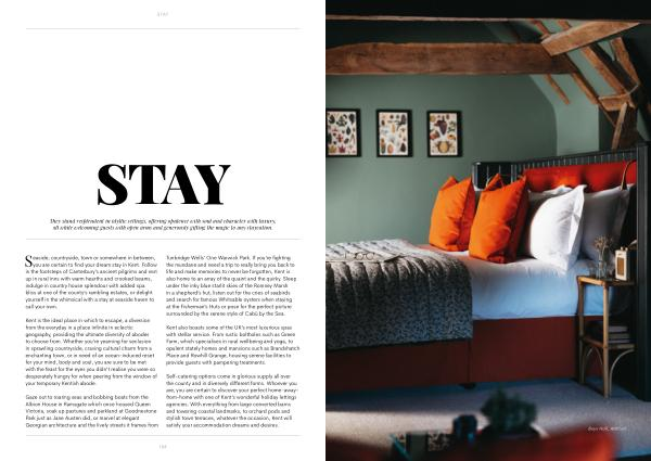 Kent is the ideal place in which to escape , a diversion from the everyday in a place infinite in eclectic geography , providing the ultimate diversity of abodes to choose from . Whether you ’ re yearning for seclusion in sprawling countryside , craving cultural charm from a enchanting town , or in need of an ocean-induced reset for your mind , body and soul , you are sure to be met with the feast for the eyes you didn ’ t realise you were so desperately hungry for when peering from the window of your temporary Kentish abode .