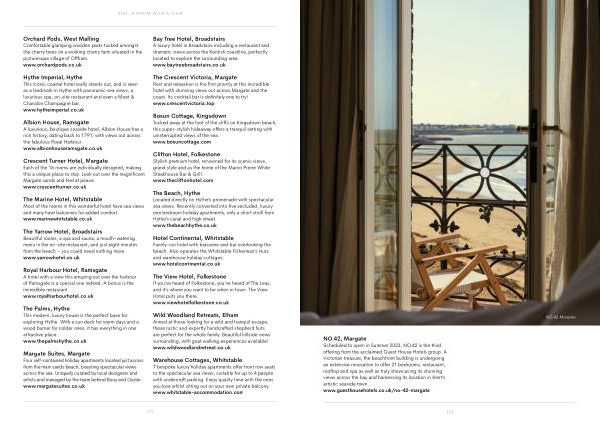 NO . 42 , Margate Scheduled to open in Summer 2023 , NO . 42 is the third offering from the acclaimed Guest House Hotels group . A Victorian treasure , the beachfront building is undergoing an extensive renovation to offer 21 bedrooms , restaurant , rooftop and spa as well as truly showcasing its stunning views across the bay and harnessing its location in Kent ’ s artistic seaside town .