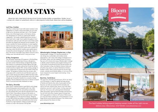 Bloom Stays offer a hand-picked selection of Kent ’ s loveliest boutique holiday accommodation . Whether you are craving a city , country or coastal break , with over 70 plus properties on their books , Bloom Stays will not disappoint .