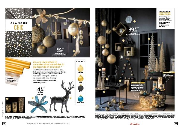 goud glitter, 26,5 cm, ref. 83792, 9,99€ - 7. Hert, mat zwart, naar keuze, 31 x 14 x 48 cm, ref. 83903, 19,99€ - 8. Metalen kegel, champagne, H 120 cm, ref. 83831,