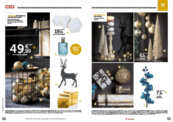 spiegels, 20/25/30 cm, ref. 84015, 19,99€ - 4. Glazen vaas, Ø 12 x 21 cm, ref. 84122, 9,99€ - 5. Hert, mat zwart, positie naar keuze, 31 x 14 x 48 cm, ref. 83903, 19,99€