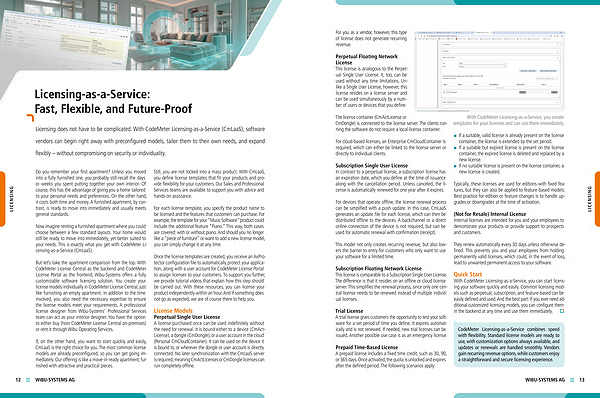 CodeMeter Licensing-as-a-Service combines speed with flexibility. Standard license models are ready to use, with customization options always available, and updates or renewals are handled smoothly. Vendors gain recurring revenue options, while customers enjoy a straightforward and secure licensing experience.