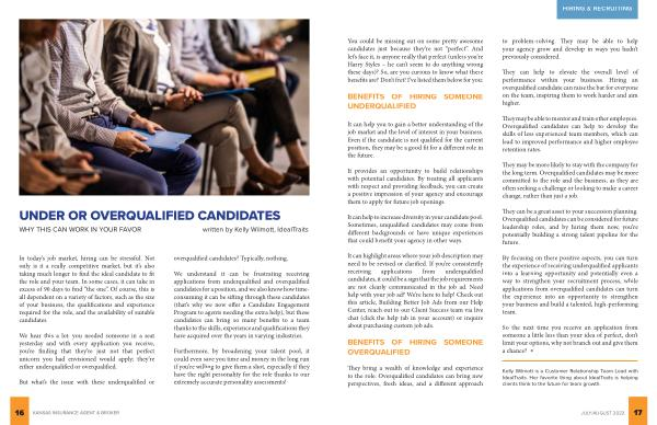 BENEFITS OF HIRING SOMEONE OVERQUALIFIED