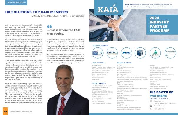 HR SOLUTIONS FOR KAIA MEMBERS written by Kevin J . O ’ Brien , KAIA President , The Reilly Company
