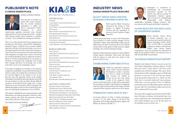 This is one of the reasons that I have anxiously been awaiting our 2023 Kansas Annual P & C Marketplace Summary Report . Using the most recently available data from AM Best , the report provides an overview of premium growth rates for various lines of business , carrier loss ratios , penetration rates and trends along with utilization of surplus lines carriers . Reviewing the overall marketplace from an empirical viewpoint allows us to better understand how we can assist our members in meeting their challenges and setting their strategic direction . I ’ d encourage you to take some time to review the marketplace report .