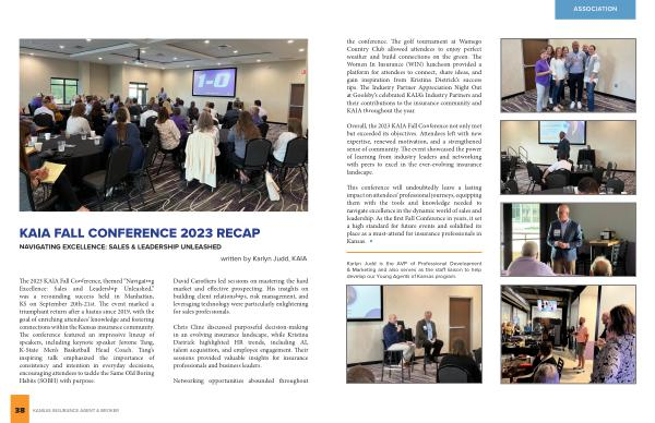 This conference will undoubtedly leave a lasting impact on attendees ’ professional journeys , equipping them with the tools and knowledge needed to navigate excellence in the dynamic world of sales and leadership . As the first Fall Conference in years , it set a high standard for future events and solidified its place as a must-attend for insurance professionals in Kansas . •