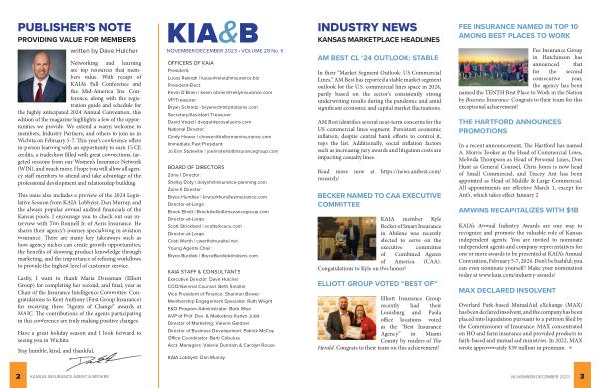 KAIA member Kyle Becker of Smart Insurance in Abilene was recently elected to serve on the executive committee of Combined Agents of America ( CAA ). Congatulations to Kyle on this honor !