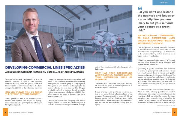 WHY DO YOU FEEL IT ’ S IMPORTANT TO BUILD COMMERCIAL LINES SPECIALTIES AND EXPERTISE AS AN INDEPENDENT AGENCY ?