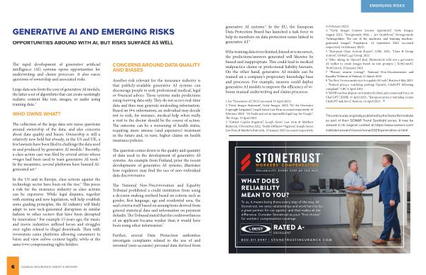 The rapid development of generative artificial intelligence ( AI ) systems opens opportunities for underwriting and claims processes . It also raises questions of ownership and associated risks .