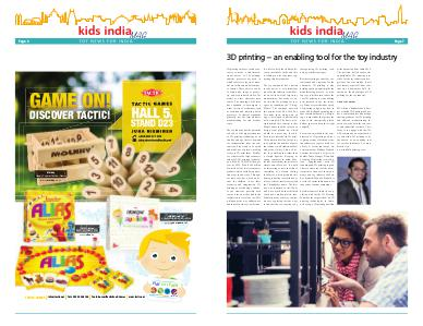 at the upcoming Kids India 2016. The pavilion will showcase the opportunities 3D printing provides for the toy industry and experience live case studies. It will also feature a special 2-hour seminar on 16 September 2016 focusing on the advantages of 3D printing for the toy industry.
