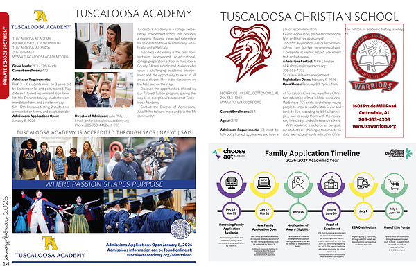 pastor recommendation. K4-1st: Application, pastor recommendation, and teacher assessment. 2nd-12th: Application, pastor recommendation, two teacher recommendations, a complete academic record, placement test, and interview. Admissions Contact: Nikki Christian nikki. christian @ tcswarriors. org 205-553-4303 Tours available with appointment Registration Dates: February 9, 2026 Open House: February 8th 2pm- 4pm