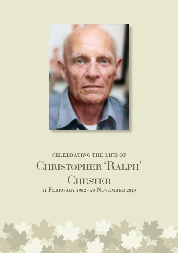 celebrating the life of Christopher ‘Ralph’ Chester 11 February 1932 - 20 November 2019