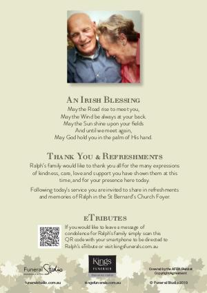 Ralph’s eTribute or visit kingsfunerals.com.au