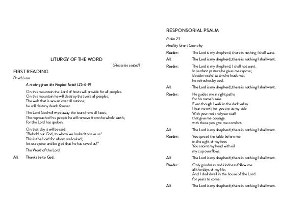 Reader: The Lord is my shepherd; there is nothing I shall want.