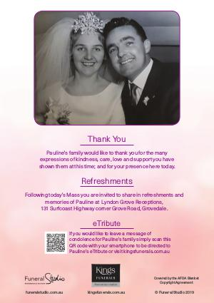 Pauline’s eTribute or visit kingsfunerals.com.au