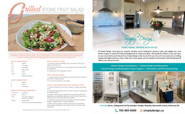 Indulge in the vibrant flavors of summer with Executive Chef Cameron ' s Grilled Stone Fruit Salad . Crispy shaved vegetables mingle with grilled peaches , plums , and nectarines , all drizzled with a delectable honey poppyseed dressing , creating a refreshing and satisfying dish bursting with freshness and sweetness .